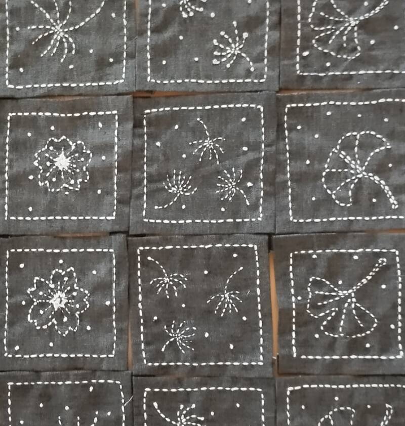 Le Sashiko est une technique ancienne, japonaise, de rapiéçage de vêtements. Dans cette broderie traditionnelle, les points doivent être de la taille d'un grain de riz. Cette façon de broder est aujourd'hui utilisée pour réaliser des pièces décoratives.